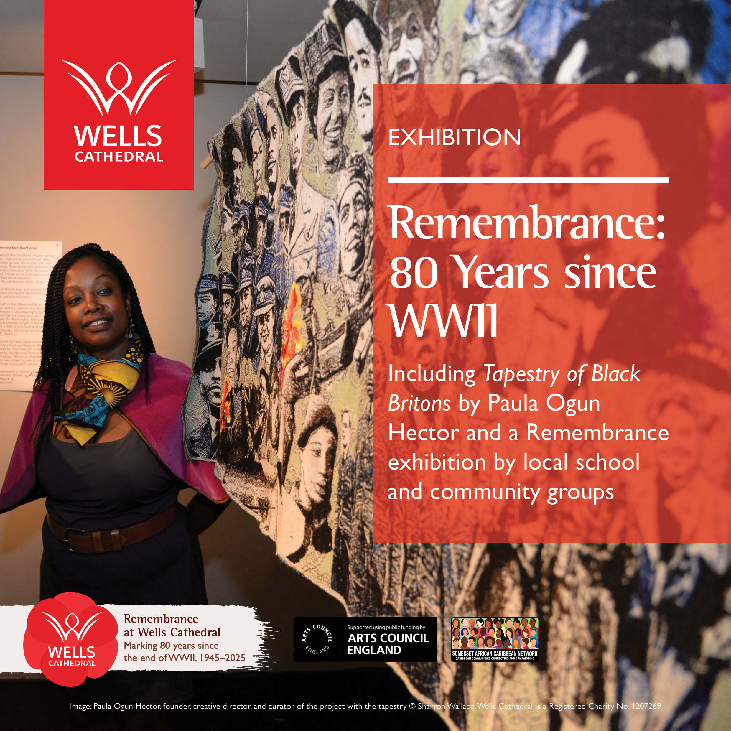 Wells Cathedral is proud to host the thought-provoking exhibition Tapestry of Black Britons, commemorating the 80th anniversary of the Second World War from 4-29 November. This important multi-participant artwork, produced by artist Paula Ogun Hector and woven by Bristol-based textile company Dash + Miller, aims to elevate Black British history and contribute to a more inclusive historical narrative.