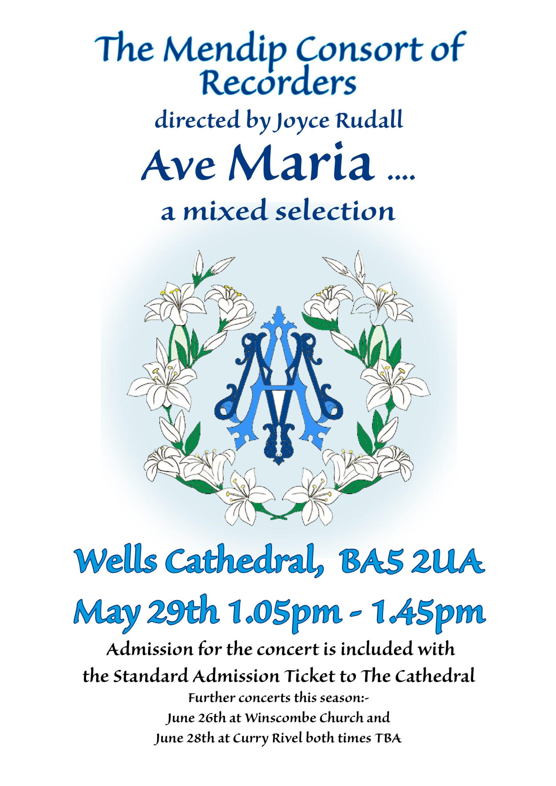 Join the Mendip Consort of Recorders for a lunchtime concert in the Nave of Wells Cathedral. Admission: Included with entry to the Cathedral with a retiring collection