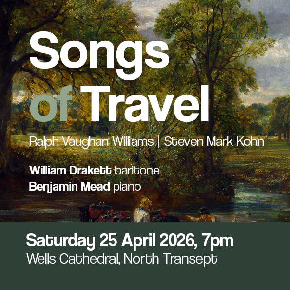 Join baritone William Drakett and pianist Benjamin Mead for an evening of song in the beautiful setting of Wells Cathedral‘s North Transept. At the heart of the programme is Ralph Vaughan Williams’ Songs of Travel, the beloved song cycle setting the poetry of Robert Louis Stevenson. Charting the wanderings of a solitary traveller through the English countryside, these songs explore themes of freedom, longing, nature, and mortality.