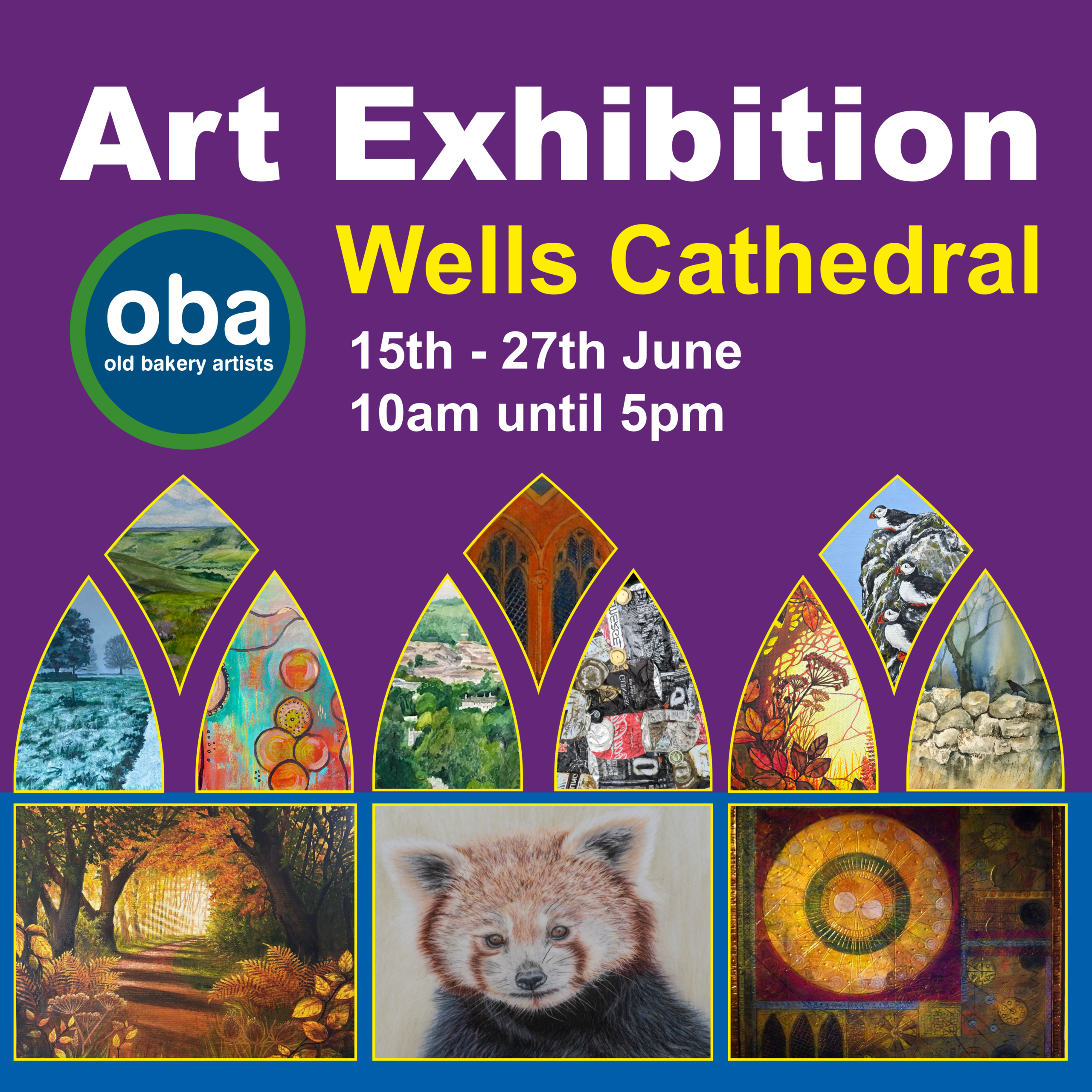 The Old Bakery Artists are thrilled to be back in the Cathedral with their latest work fresh from the studio. OBA was formed almost 30 years ago to enable artists to exhibit their work. We are a group of individuals residing in the Creative triangle between Bath, Frome and Wells. There are 13 of us! the Bakery is no more but we have become fondly known as 'The Old Bakers' This years exhibition contains work from new artists and also the latest work from our established members. Since we are all individuals prices vary and so works are affordable to all.
